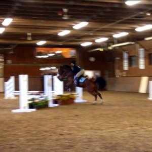 This show I was only showing in Intermediate Fences, which meant that I went in the second class of the day. At first, I drew a big, bay gelding named Dillon. I had seen him go before at other JWU shows, so I was excited that I was finally in a division he was used in. Unfortunately, Dillon was just as excited as I was, only in a bad way. His warm up consisted of lots of bucking and running away with his rider, so he ended up being pulled for the day. My next draw was a cute little mare named Ali. As I watched her warm up, I heard her owner commenting that she was a very green jumping bean and would need balancing. Surprisingly, this was a bit of a comfort for me. I have ridden my share of green horses over fences, including my own, so it felt more like a training experience and less like riding a horse that is on autopilot (although sometimes those ones are the best). I was asked to go first, so I mounted up and off we went. I quickly learned that, yes, the mare was very green, but she was also very willing. Our first three fences went perfectly, but as I turned the corner to my third fence things got a little wonky. Apparently I forgot how to use my outside leg, and we ended up with a crooked line to the fence. This caused us to land as if we were doing a bending line back to fence one, and that is exactly what Ali had in mind. It took a large amount of inside leg to convince her that we needed to go straight and not over the next fence she had her eye on. Thankfully, she decided that I had the right idea as we realigned and were back on our course. Oh, I should mention that this all happened directly in front of the judge. Oh well. The rest of our course went relatively well, though a little speedier than the first half. I ended my course feeling proud of the little mare as we placed fourth out of seven riders. (You can view a video of a few of our fences here!)