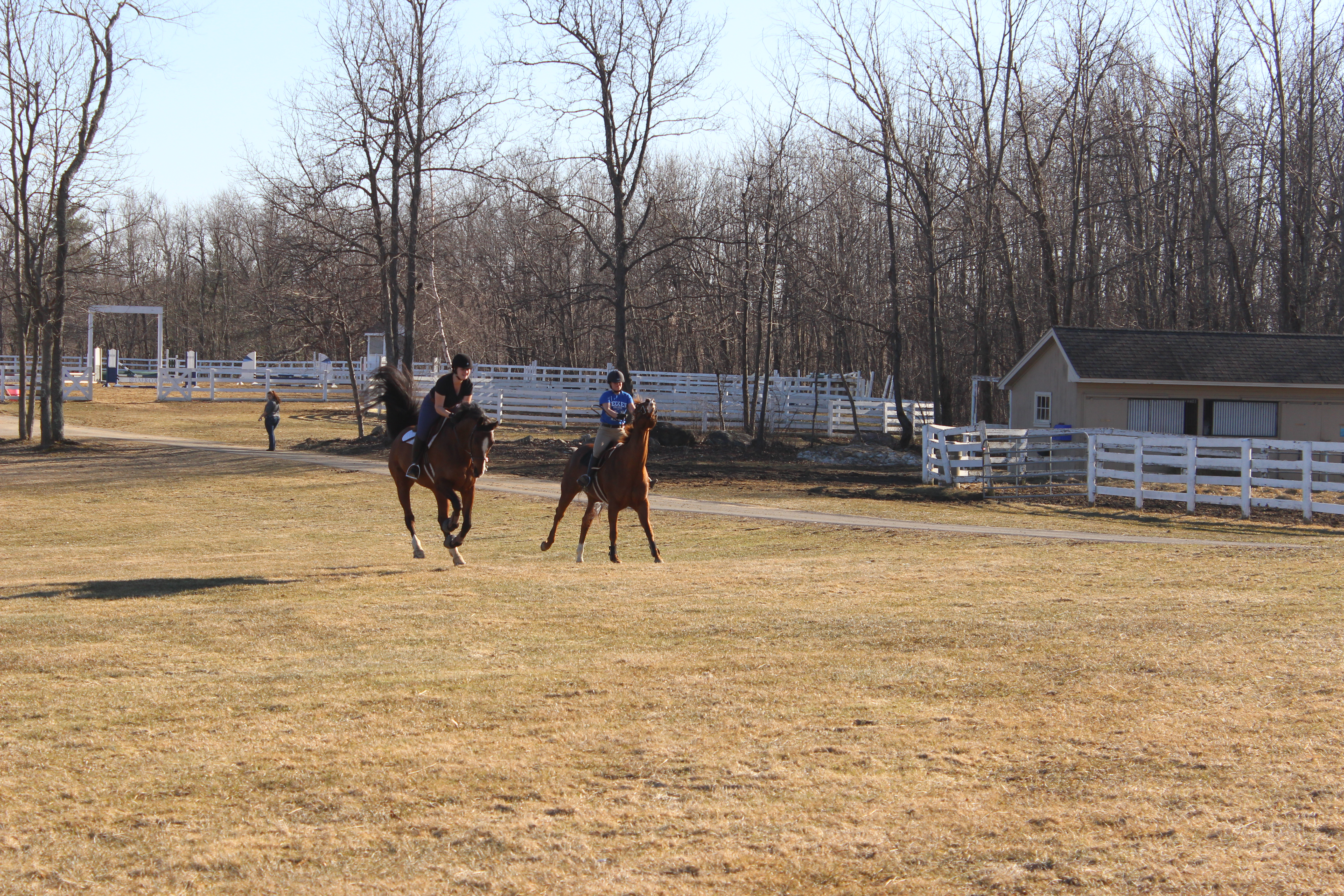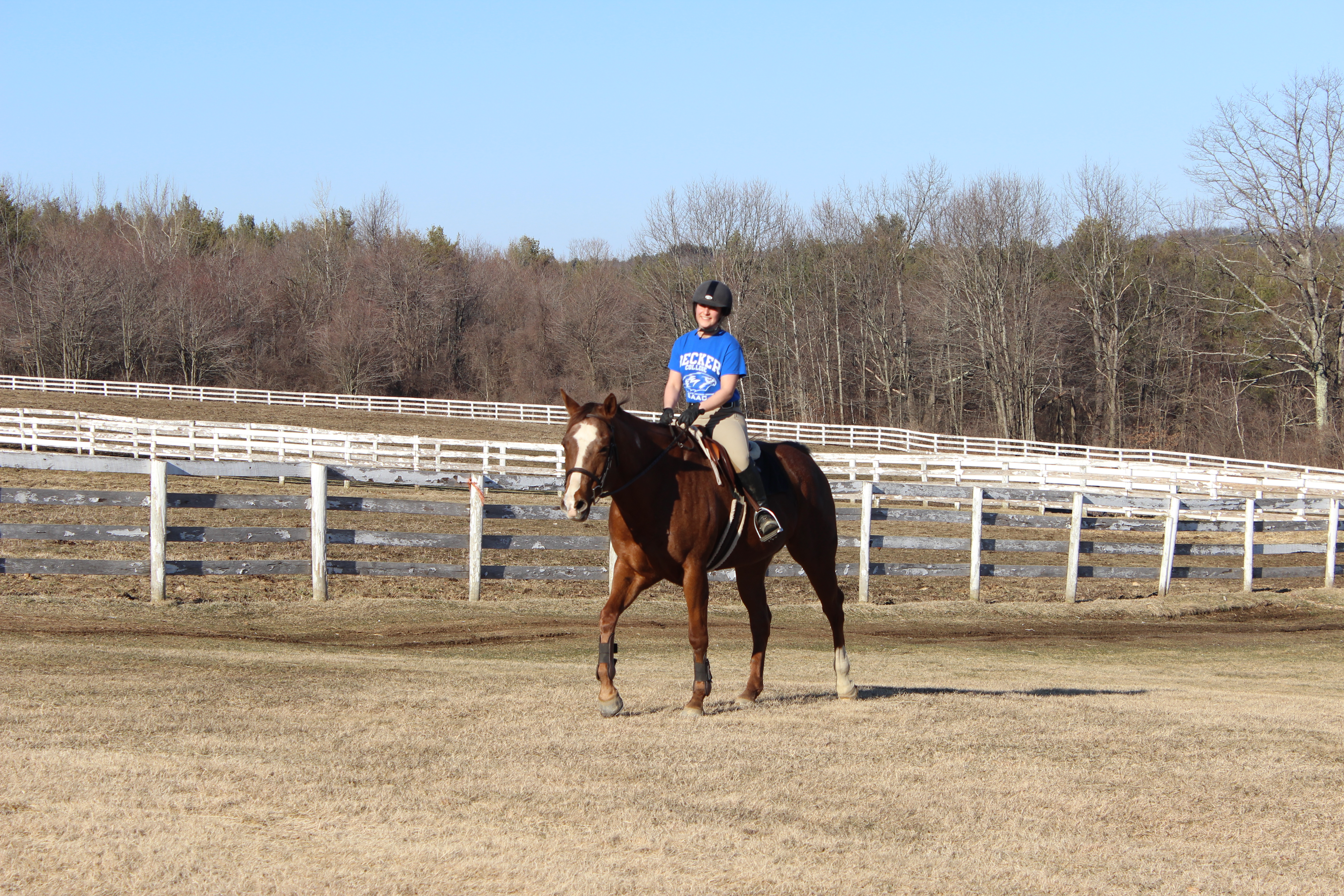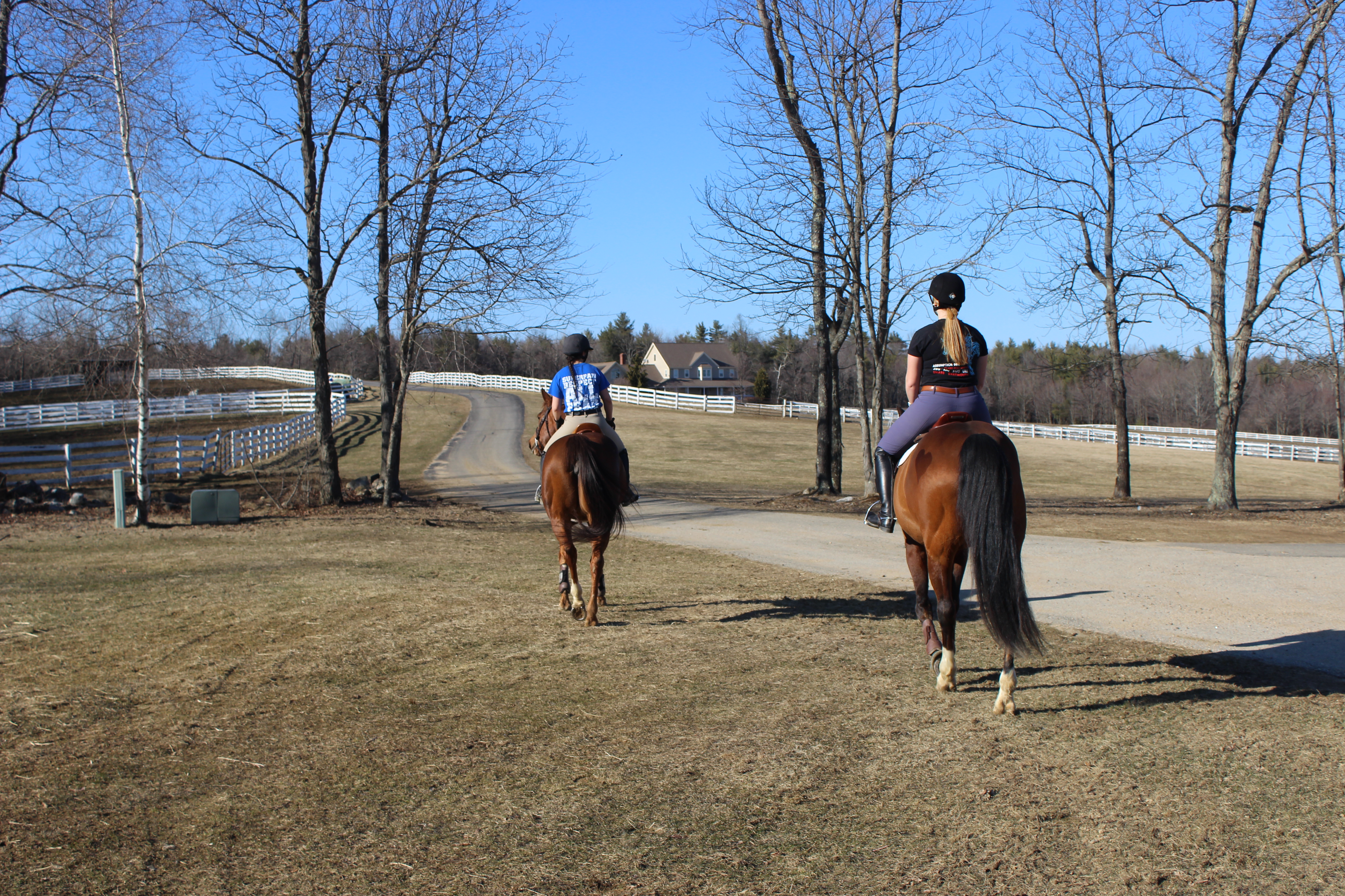 I knew that riding in the HUGE outdoor at school only meant one thing, Ax was going to be CRAZY! Unfortunately, I wasn’t wrong. Walking was an excuse to spook at non-existent monsters, working trot became extended trot, and canter turned into a series of bucks and leaps. Once he was done with his spazz attack, I could just feel him wanting to stretch his legs, and after a winter in an indoor where he was down the long side in five strides, I couldn’t blame him. Thankfully for Ax, Becker’s outdoor is beautifully long and perfect for a hand gallop. When he kept pulling to go faster and I didn’t want to stop him, I decided that we were both too excited to be outside to actually work on anything productive. So outside the ring we went for a nice cool down.