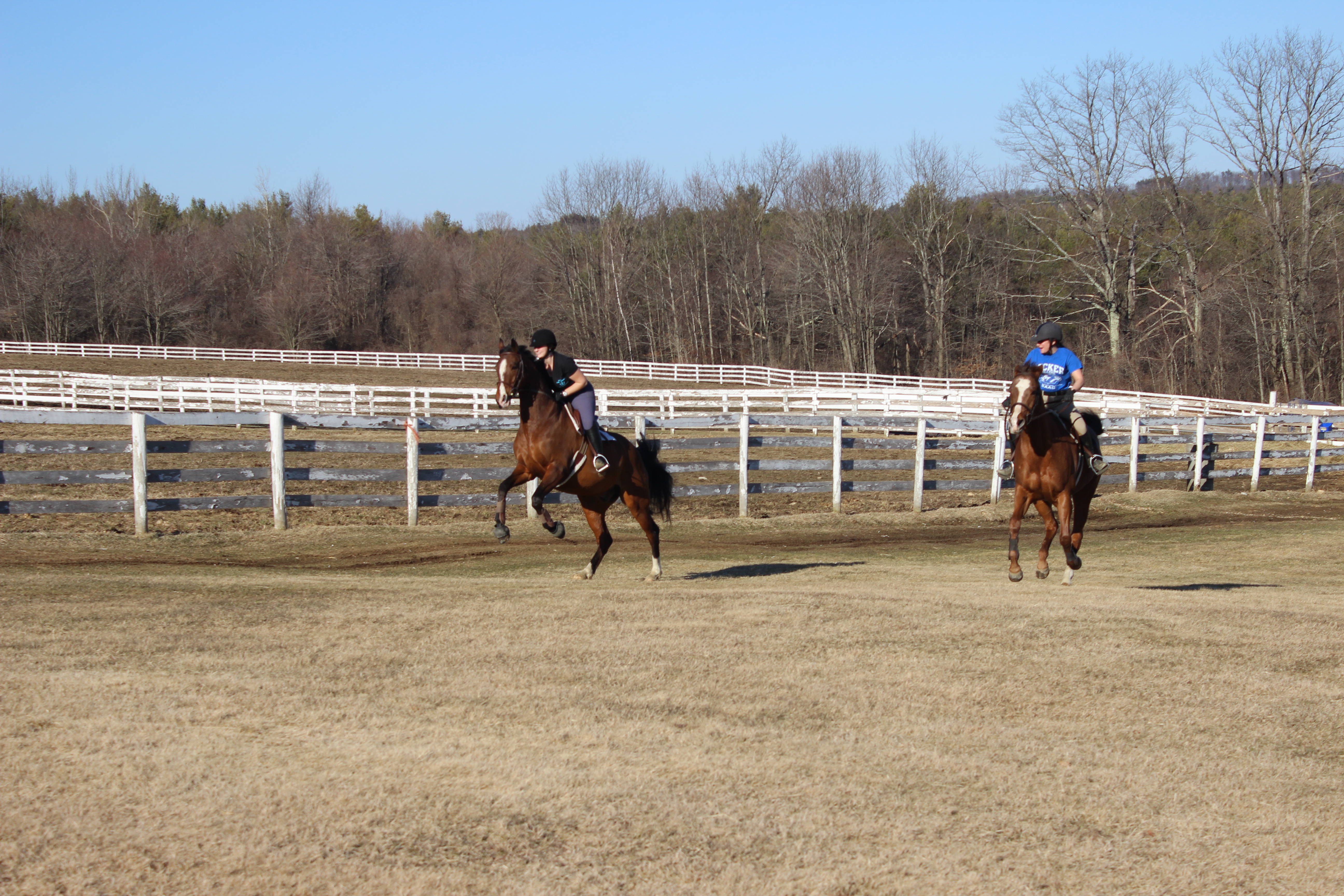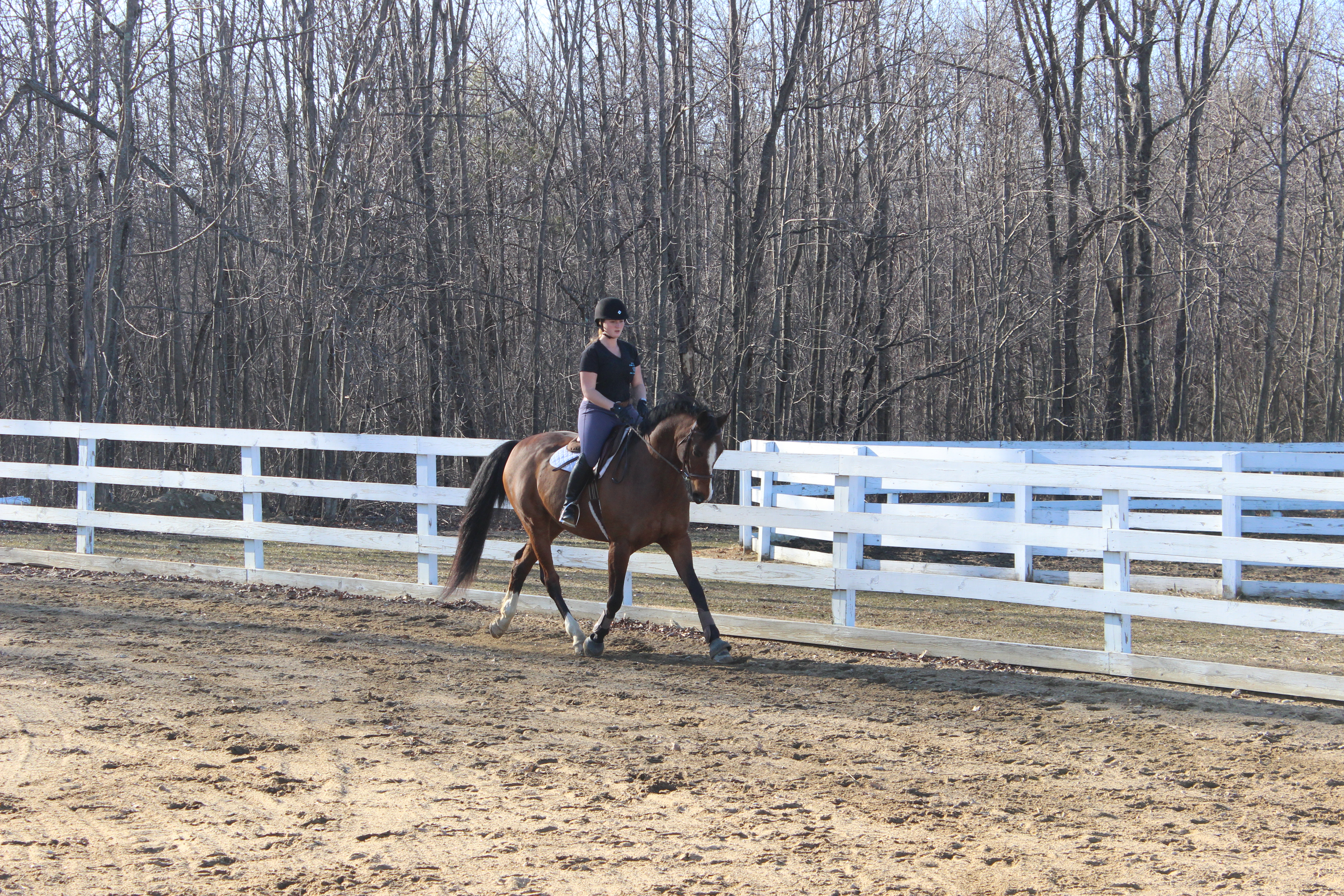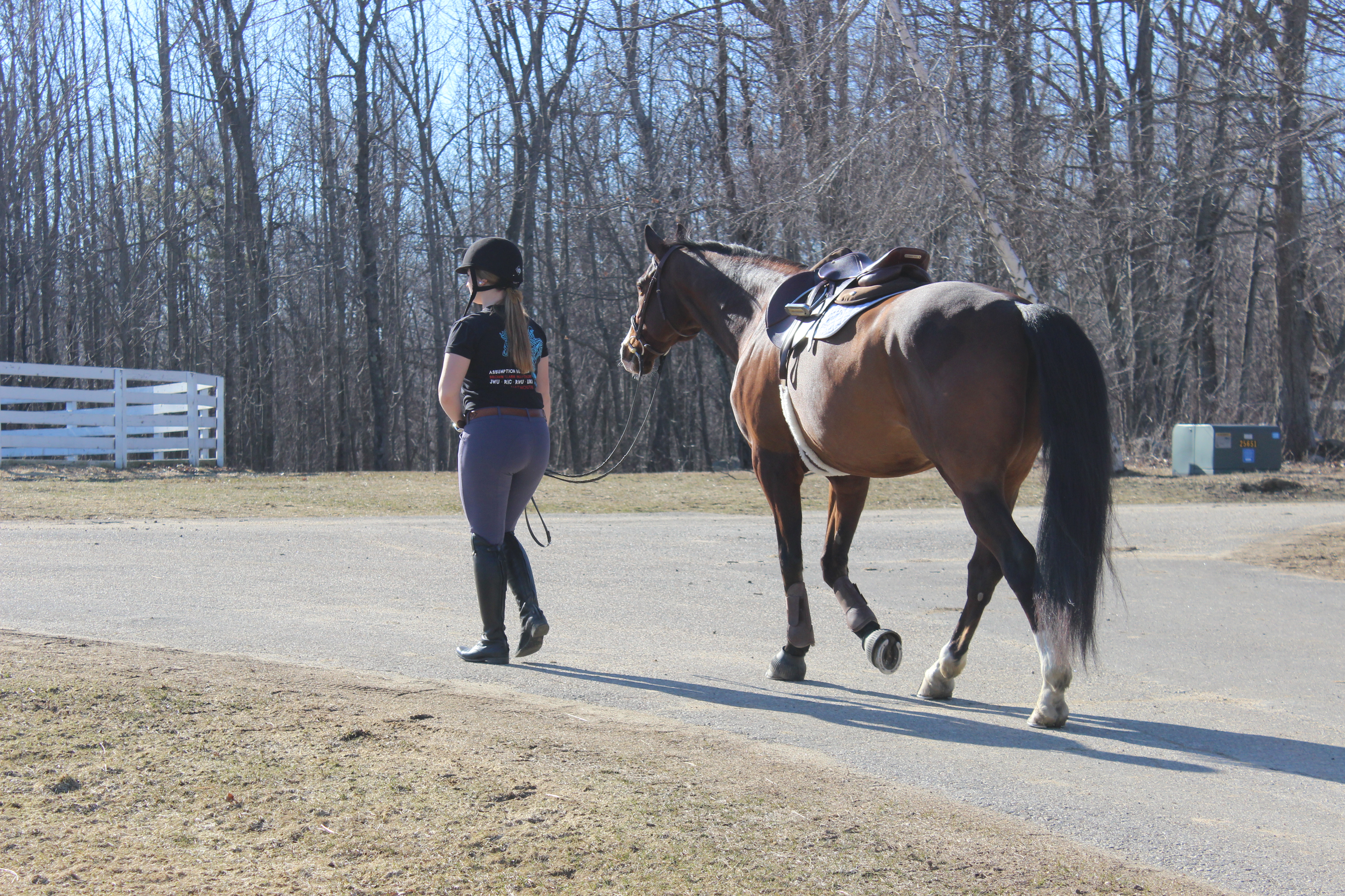 I knew that riding in the HUGE outdoor at school only meant one thing, Ax was going to be CRAZY! Unfortunately, I wasn’t wrong. Walking was an excuse to spook at non-existent monsters, working trot became extended trot, and canter turned into a series of bucks and leaps. Once he was done with his spazz attack, I could just feel him wanting to stretch his legs, and after a winter in an indoor where he was down the long side in five strides, I couldn’t blame him. Thankfully for Ax, Becker’s outdoor is beautifully long and perfect for a hand gallop. When he kept pulling to go faster and I didn’t want to stop him, I decided that we were both too excited to be outside to actually work on anything productive. So outside the ring we went for a nice cool down.