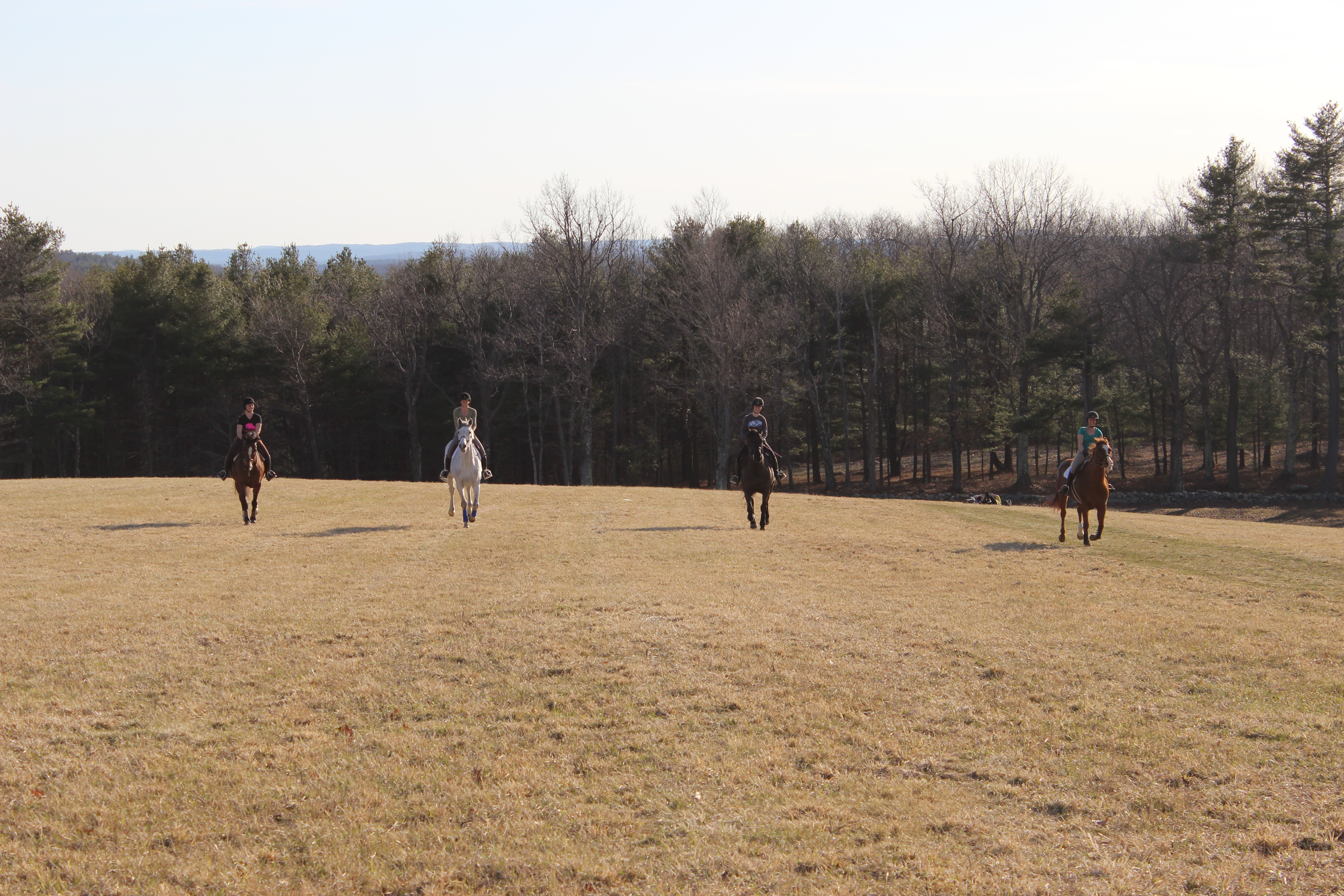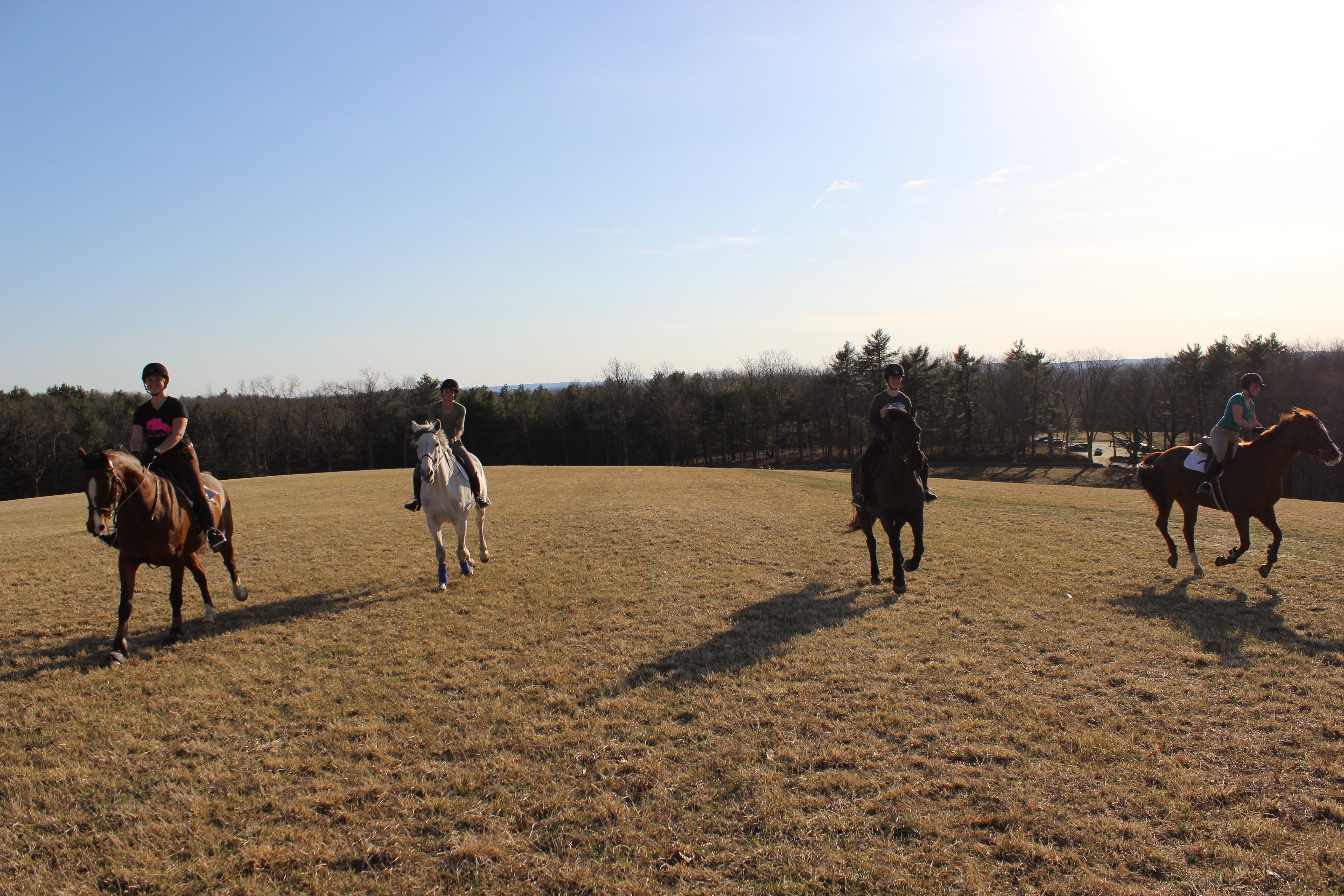 Have you ever had one of those days when you have so much free time that you don’t know what to do with yourself? I don’t get them very often, but last weekend was my first weekend off from IHSA shows in a month and I could finally get a real two day weekend. So what does a horse girl do on a day when she has nothing to do? Go to the barn, of course. And what does a horse girl do when she is planning on spending a beautiful afternoon at the barn? Drag her boyfriend along with her to take pictures (actually he sort of volunteered). The sun and almost seventy degree temperatures were the perfect combination to spend the afternoon riding, and as I got to the barn a few of the girls suggested riding to Moore State Park to ride in the fields. YES PLEASE! It had been five months since Ax had gotten the chance to really gallop. After de-mudifying my beast for an hour and a quick warm up in the outdoor to ensure that he was not going to spend the afternoon as a bronco, Ax and I were off to the park with Emily, Kirby, and Sarah.