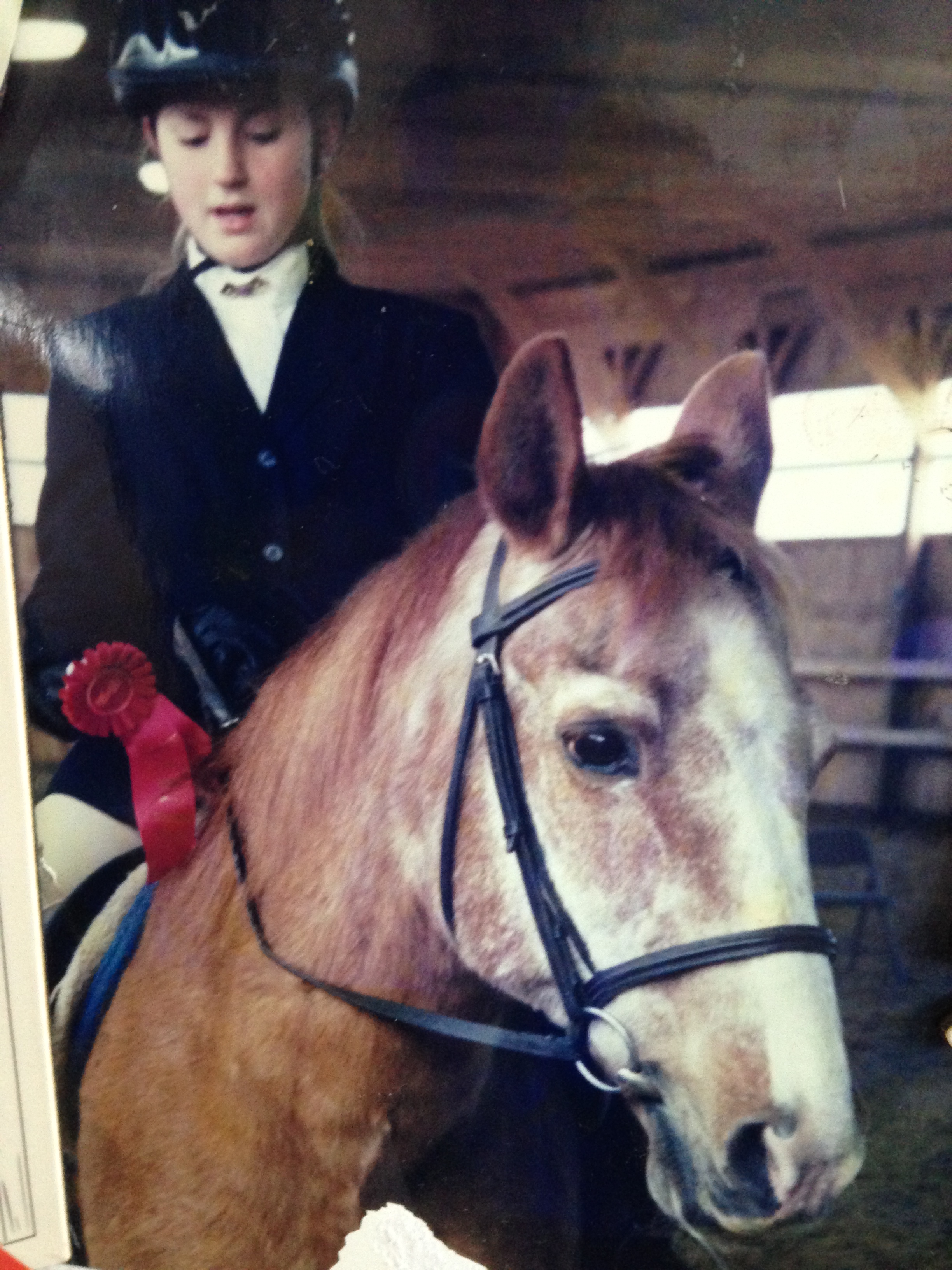 - I have to mention two different horses for this one. Aside from ponyrides at the fair, the first horse I actually took a lesson on was named JB. He was a chubby, chestnut Quarter Horse with permanent old man face, and he taught me everything. From grooming and tacking up to jumping cross rails in Short Stirrup at my very first horse show. He also taught me how to fall off…many, many times. He passed in 2011 and I know that he is up there somewhere watching over Ax and I with my favorite old schoolie, Ziggy. Zig was a HUGE chestnut Appendix (I think) with tumor in one of his eyes. To this day, I think I can attribute my continuation of riding horses to this big guy. After a nasty fall on a trail ride resulted in some damage to my tailbone, he was the only horse I would ride. We went trail riding for hours and he helped me get my confidence back. If there was one horse that I would have made live forever just to keep in a pasture, it would have been Zig.