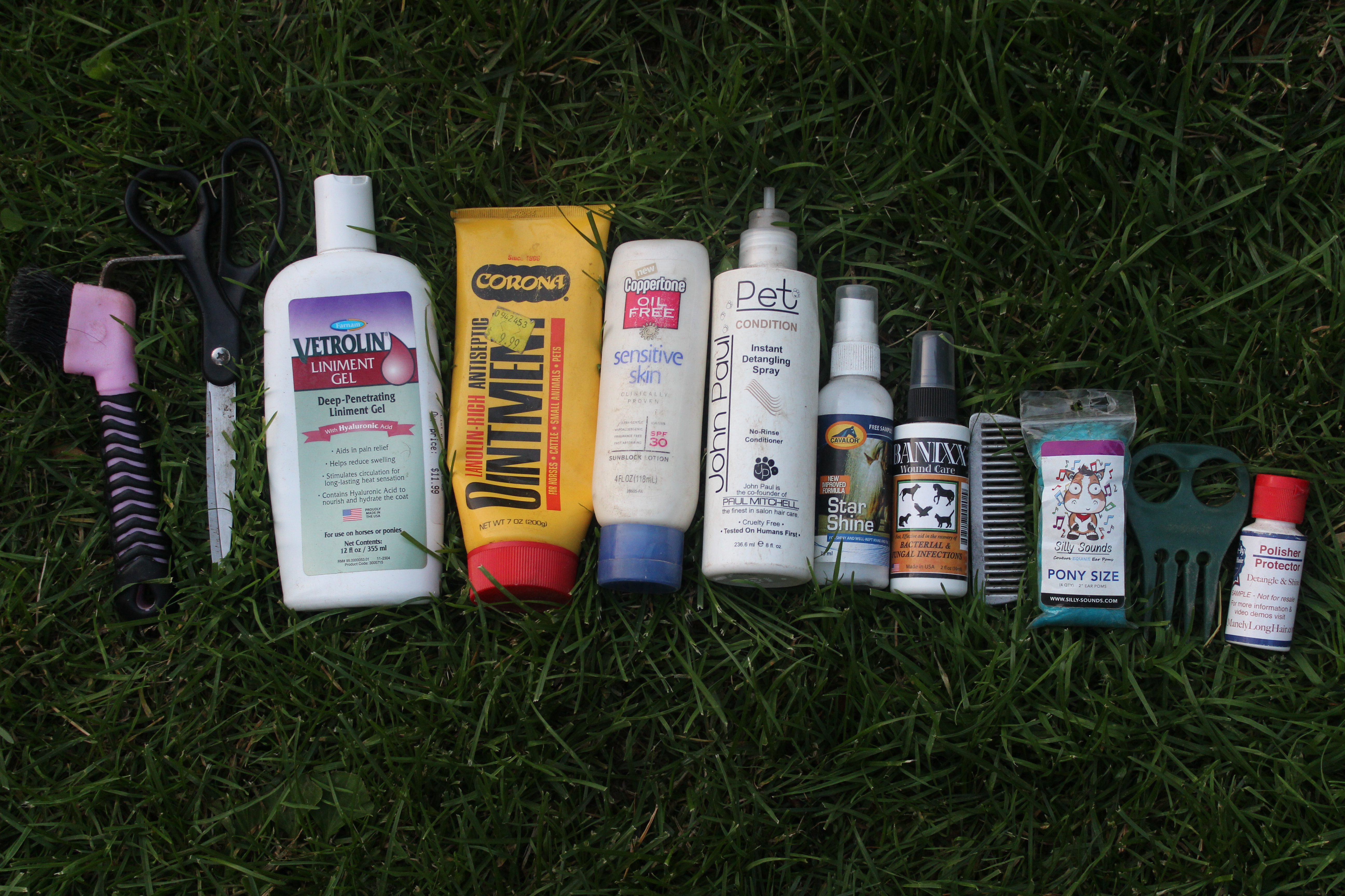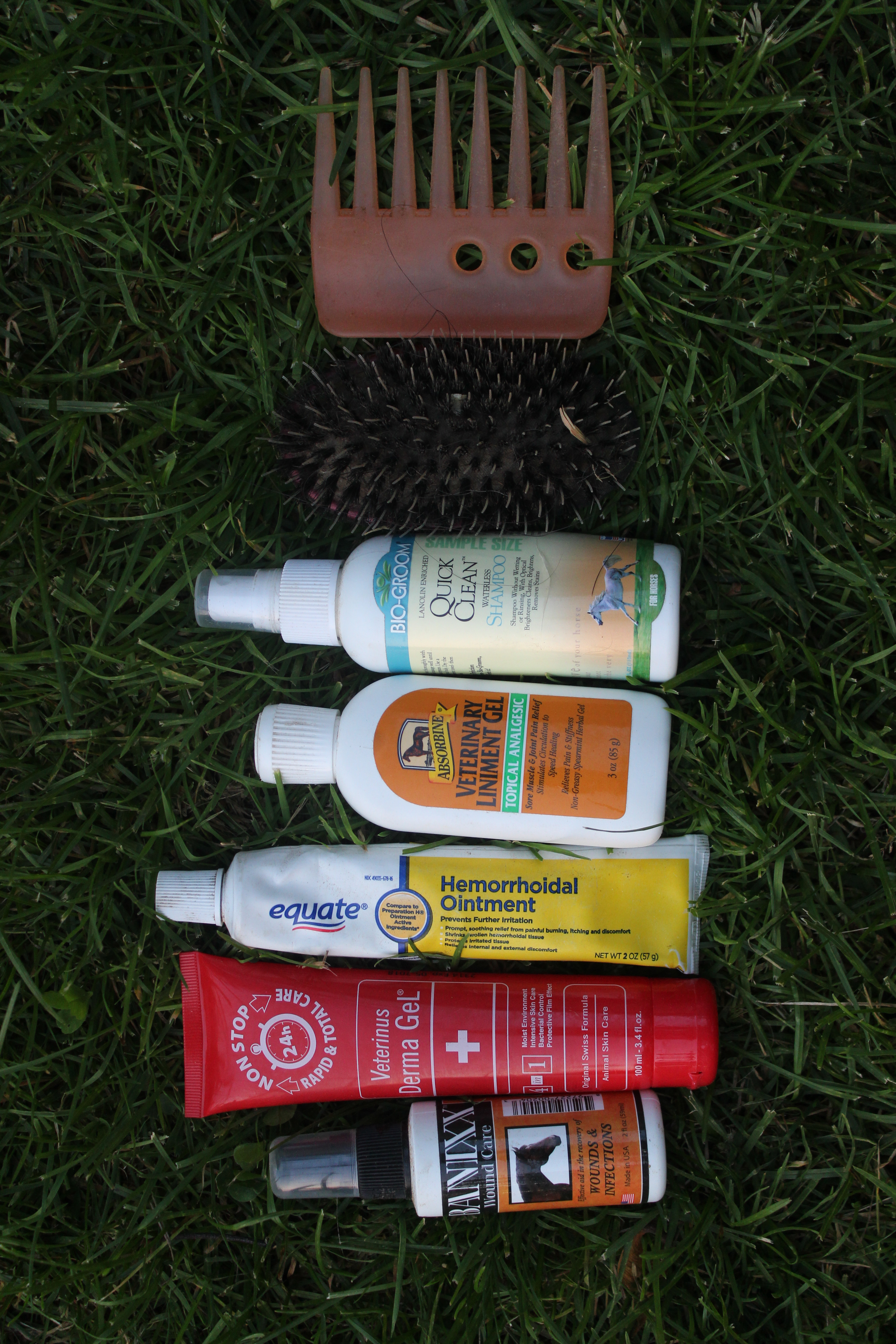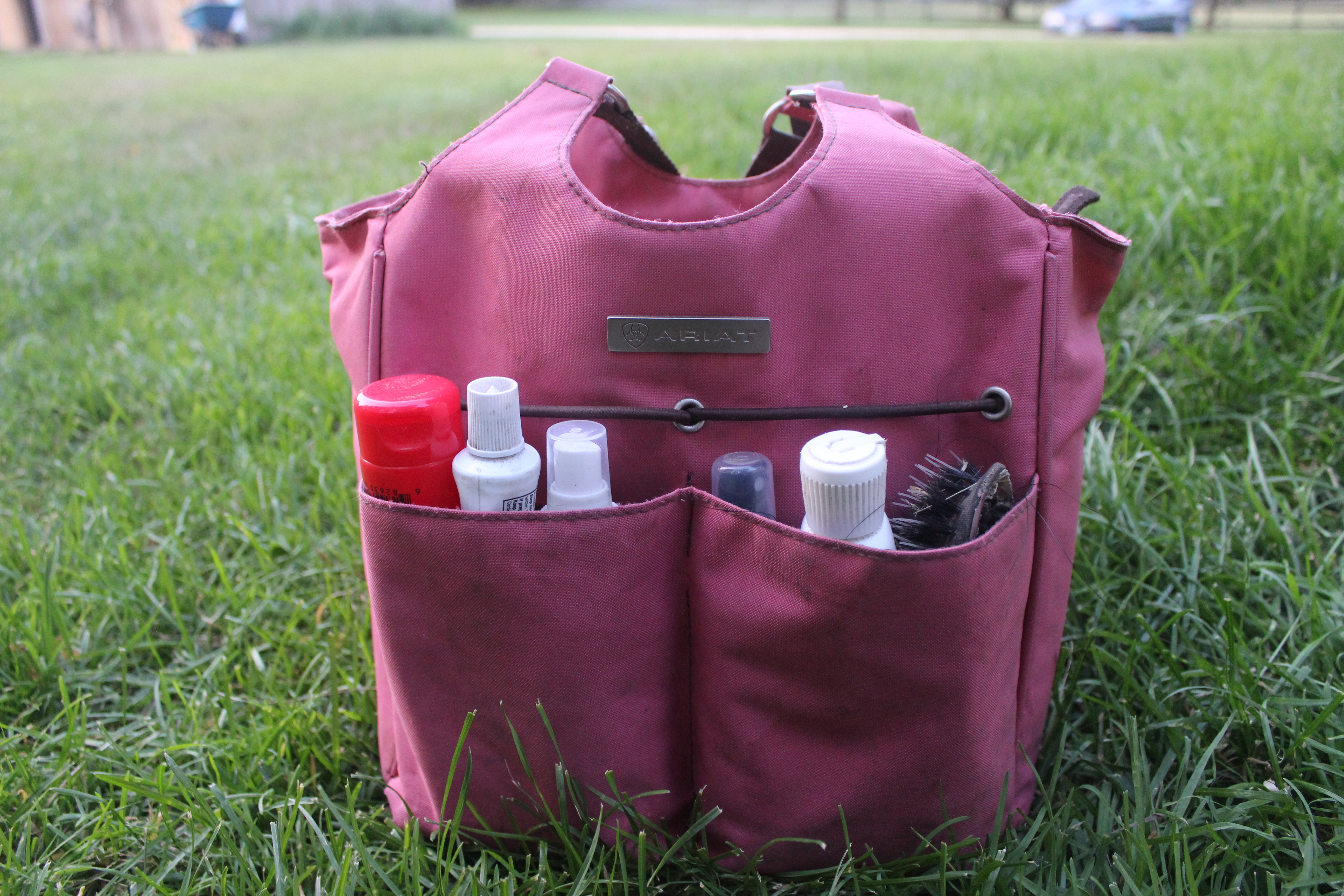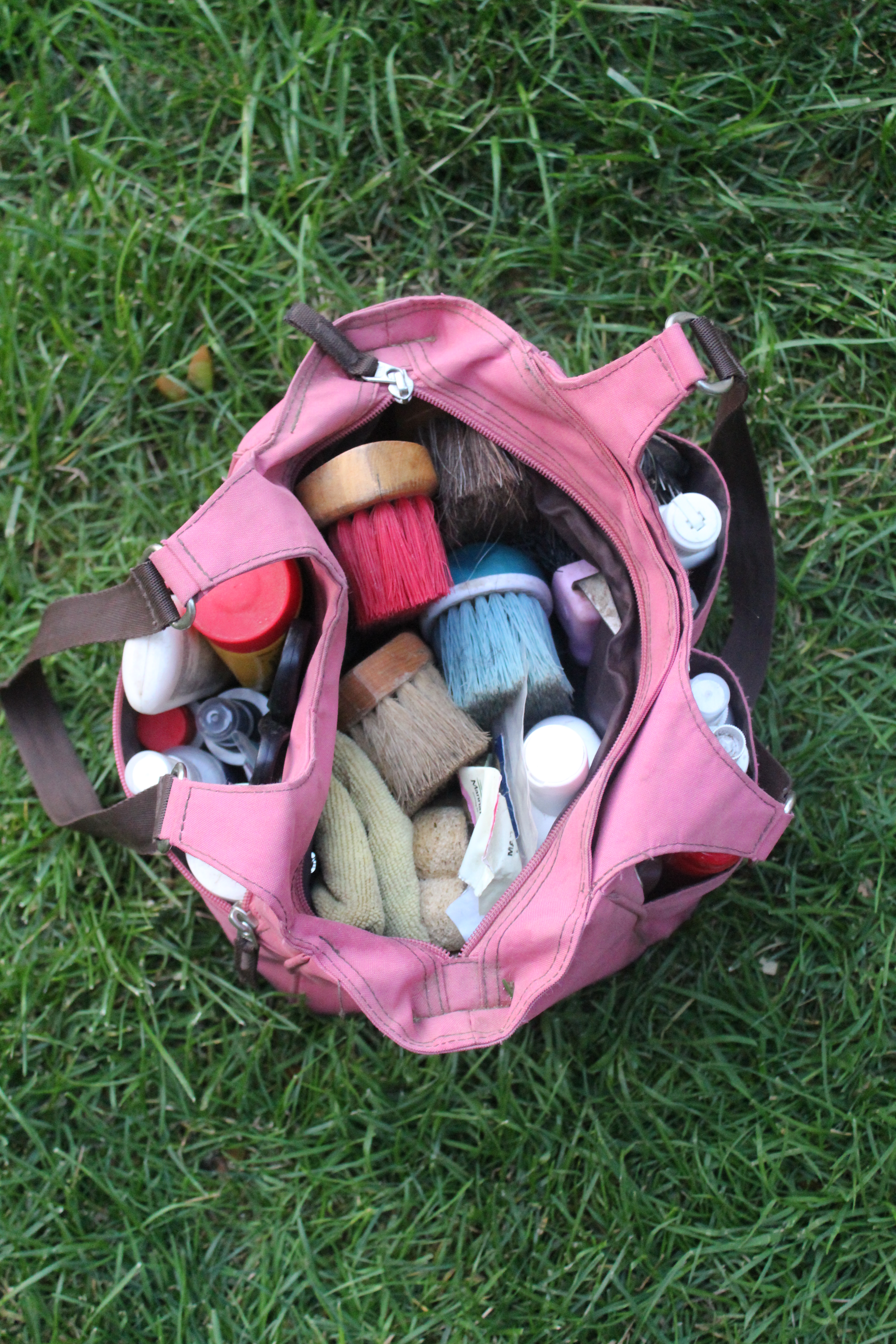 Is there a “Hoarders: Grooming Bag Edition”? Because I need to be on it. My bag of brushes is a never-ending pit of random horsey things. The grooming bag I have is the Ariat Mini Tote in pink. I tried to keep the bag small so less things could be thrown in but I have manage to stuff it to the max.